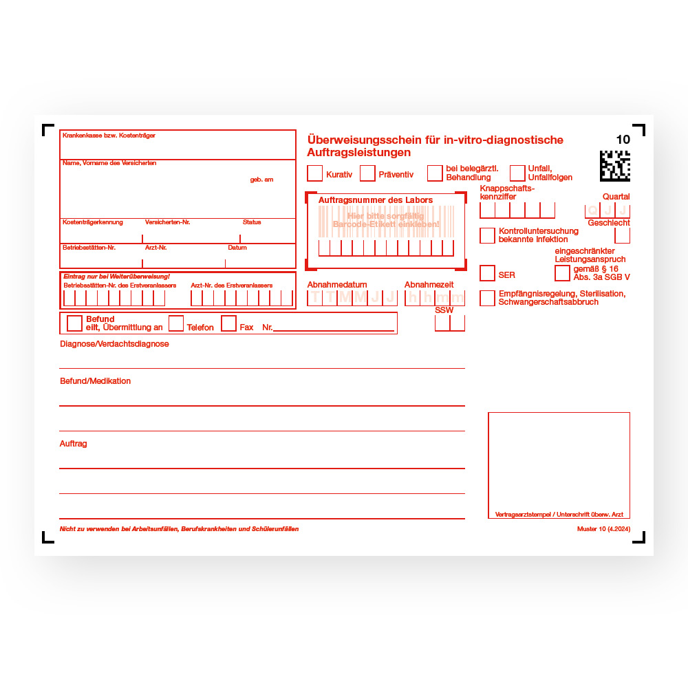 Muster 10 - Überweisungs-/Abrechnungsschein f. Laboratoriumsuntersuchungen als Auftragsleistung