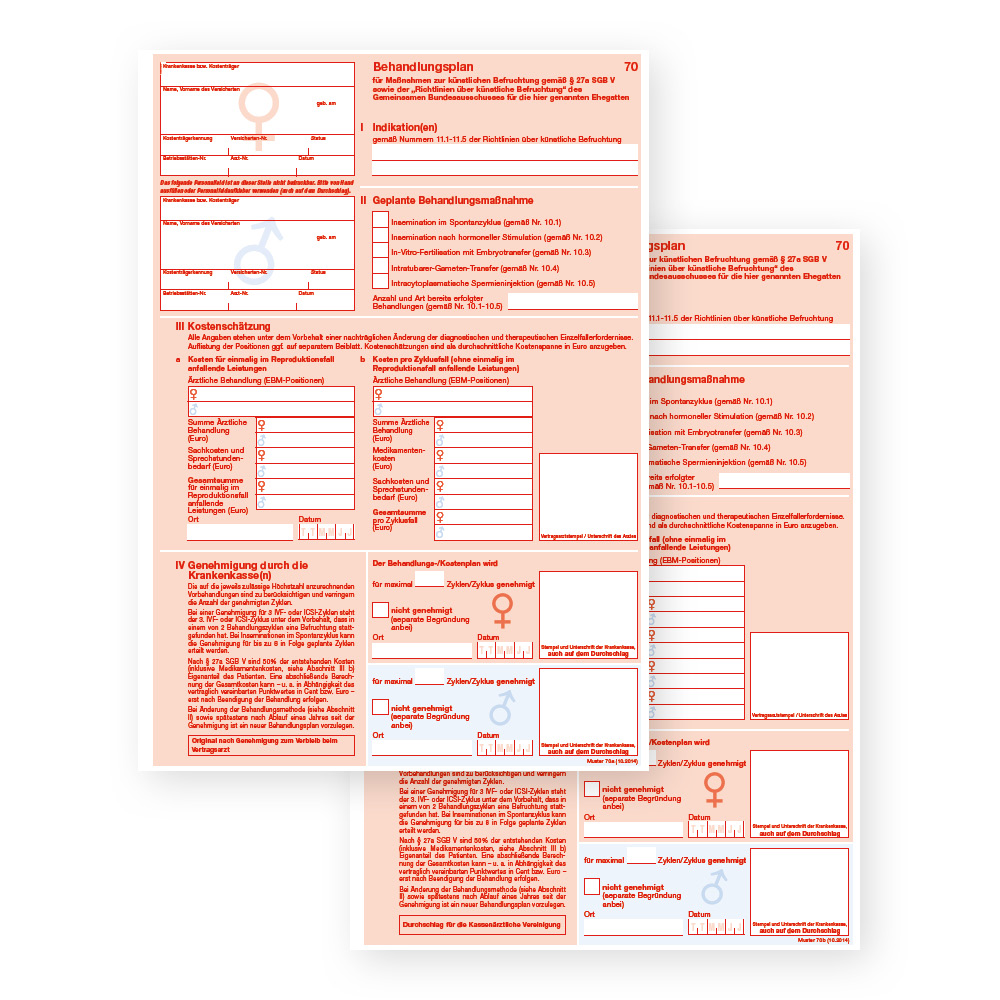 Muster 70 - Behandlungsplan für Maßnahmen zur künstlichen Befruchtung