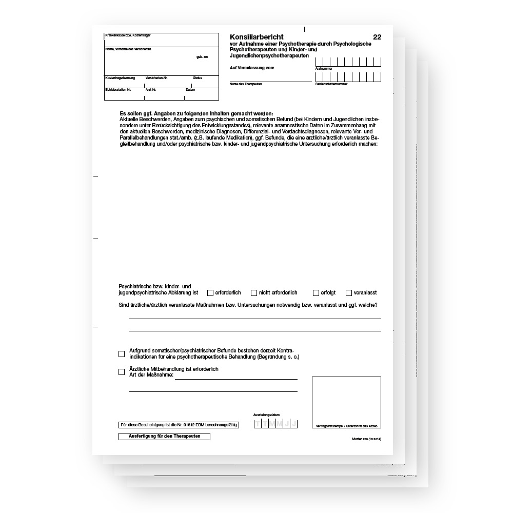 Muster 22 - Konsiliarbericht vor Aufnahme einer Psychotherapie