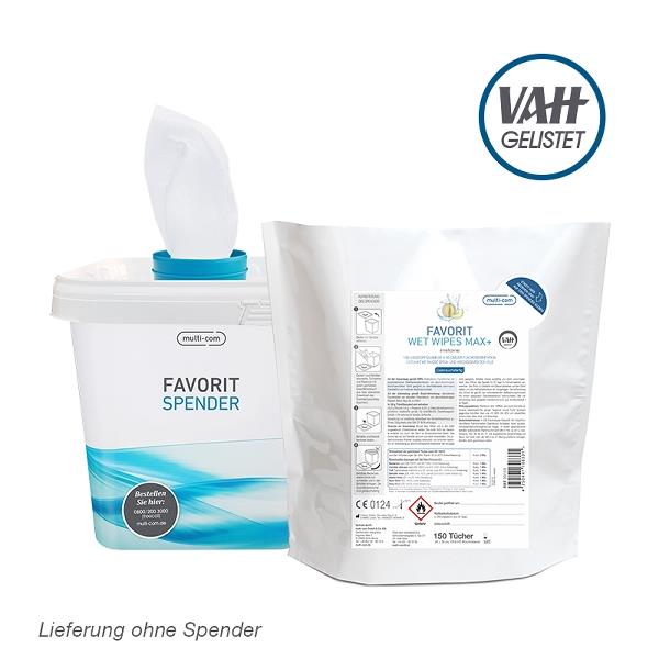 Gebrauchsfertige aldehyd- und phenolfreie Vliestücher zur schnellen Wischdesinfektion und Reinigung von alkoholbeständigen Flächen und medizinischem Inventar. Vorgetränkt mit FAVORIT Sprüh- und Wischdesinfektion PLUS.