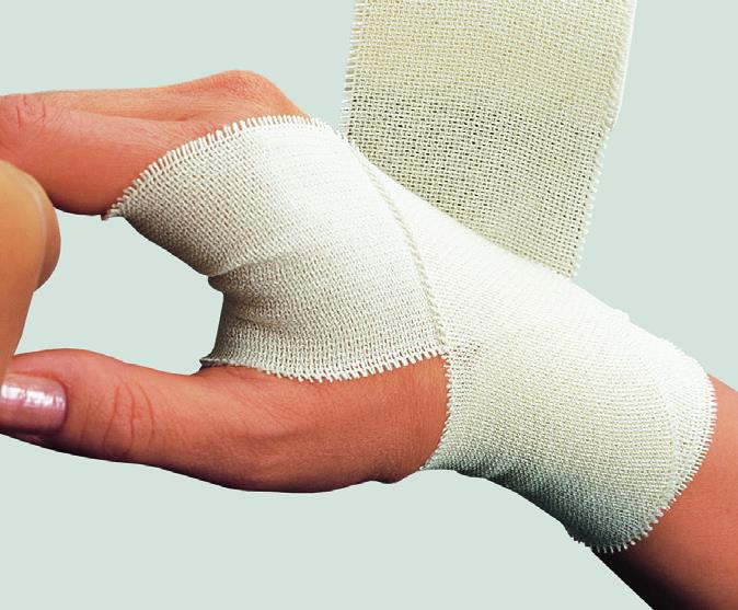 (100 % Baumwolle) mit Schlingkante, DIN 61 632, 5 m gedehnt; einzeln eingesiegelt mit Verbandklammern