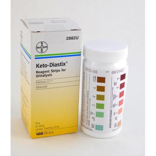 Teststreifen zur semiquantitativen Harnzucker-Selbstkontrolle und zum Nachweis von Ketonkörpern im Harn.