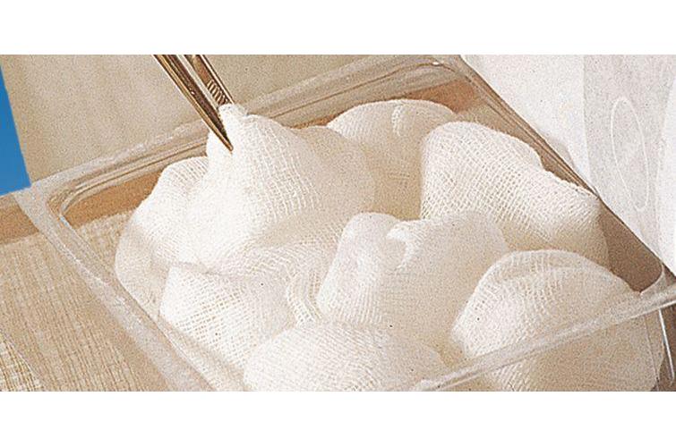 Schlinggazetupfer aus Verbandmull EN 14079, 20-fädig; der aus nur einem Mullstück gefertigte Tupfer ist so verschlungen, dass die Schnittkanten sicher im Inneren liegen; mit hohem Absorptionsvermögen.
