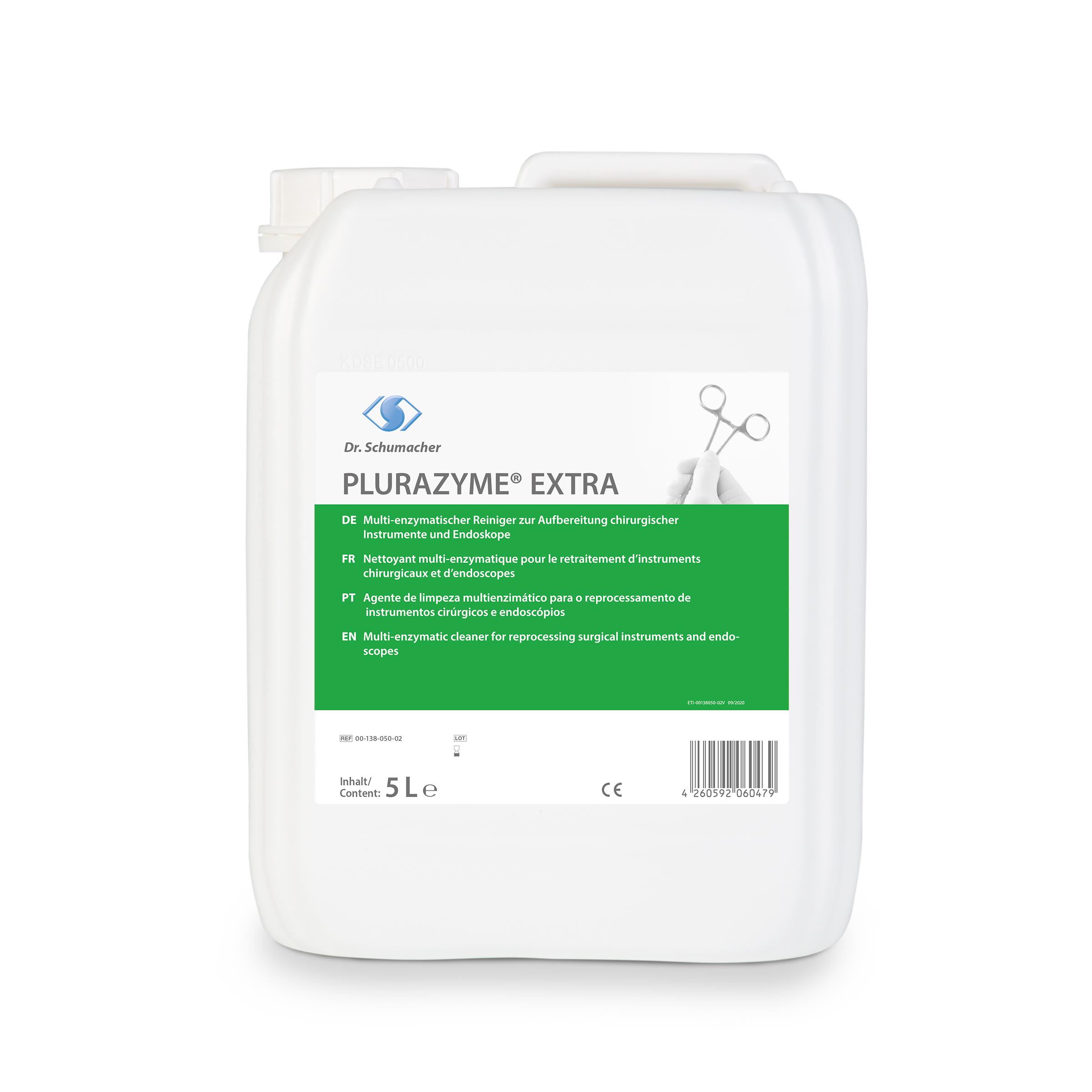PLURAZYME EXTRA ist das ideale Reinigungskonzentrat für die manuelle Aufbereitung einer Vielzahl von Medizinprodukten. Die hohe Materialverträglichkeit ermöglicht die Reinigung von chirurgischen Instrumenten, starren und auch flexiblen Endoskopen. Dabei sorgen der Duft und die ausgezeichnete Reinigungskraft für eine angenehme Anwendung, ob im Tauchbad oder Ultraschallbad. Die aktive Formel aus 3 Enzymen und ionischen Tensiden durchdringt effektiv ein breites Spektrum an organischen Verunreinigungen von geronnenem Blut, über Schleim bis hin zu Fett - ohne zu fixieren. Die hohe Kompatibilität mit anderen Reinigern und Desinfektionsmitteln sorgt für eine unkomplizierte und flexible Integration von PLURAZYME EXTRA in Ihre Prozesse.