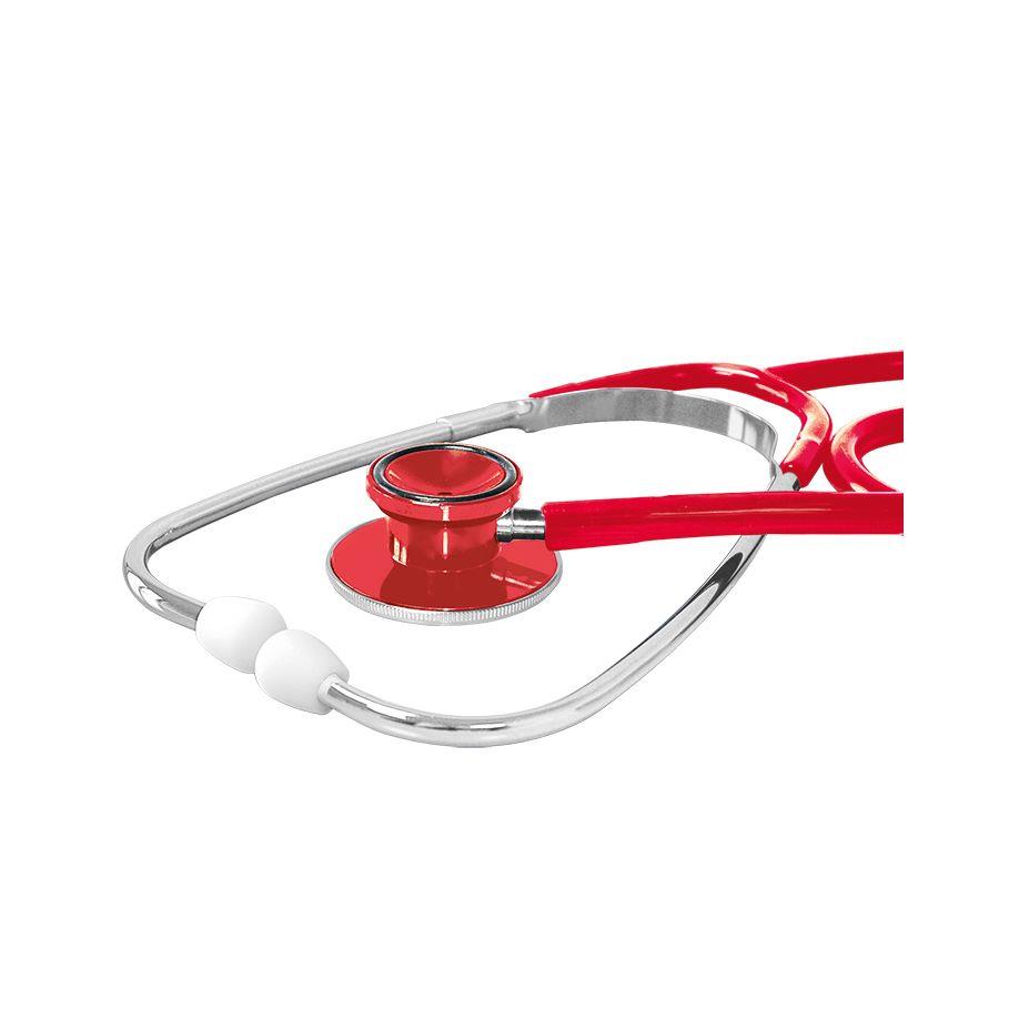 Das kleine Edelstahl-Doppelkopf-Bruststück ist optimal auf die Kinder-Auskultation (Membran-Durchmesser: 37 mm, Trichter-Durchmesser: 30 mm) abgestimmt. Mit hochwertigem Einschlauchsystem, Doppelblattfeder zur individuellen Anpassung der Ohrbügel und aufsteckbaren Soft-Ohroliven.