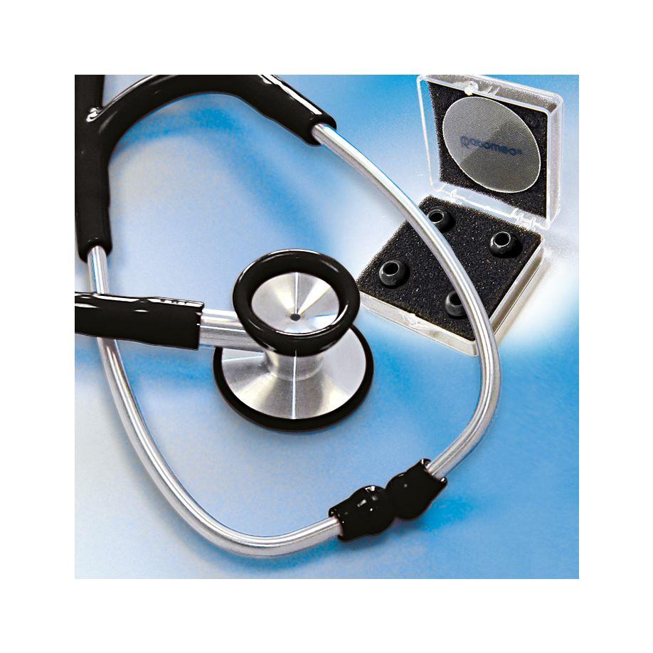 - Doppelkopf-Stethoskope aus Edelstahl, beste akustische Übertragung, kombiniertes Edelstahl-Bruststück mit isolierendem Kunststoffrand, integrierte Edelstahl-Ohrbügelfeder, extra kräftiger PVC-Schlauch, angenehm weiche Ohroliven, inkl. 4 Ersatzohroliven zum Schrauben und 1 Ersatzmembrane, 100% latexfrei und nickelfrei, große Membrane: 44 mm Ø, Trichter: 35 mm Ø, Gesamtlänge: 70 cm
