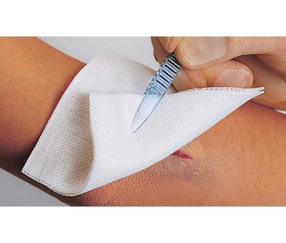 Universell einsetzbare Vliesstoffkompresse, weich und saugfähig, steril