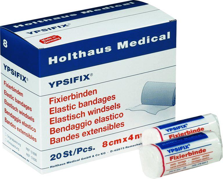 Glatte, elastische Fixierbinde mit hoher Dehnung zur Fixierung von Wundauflagen insbesondere an viel bewegten Körperteilen sowie an Gelenken.