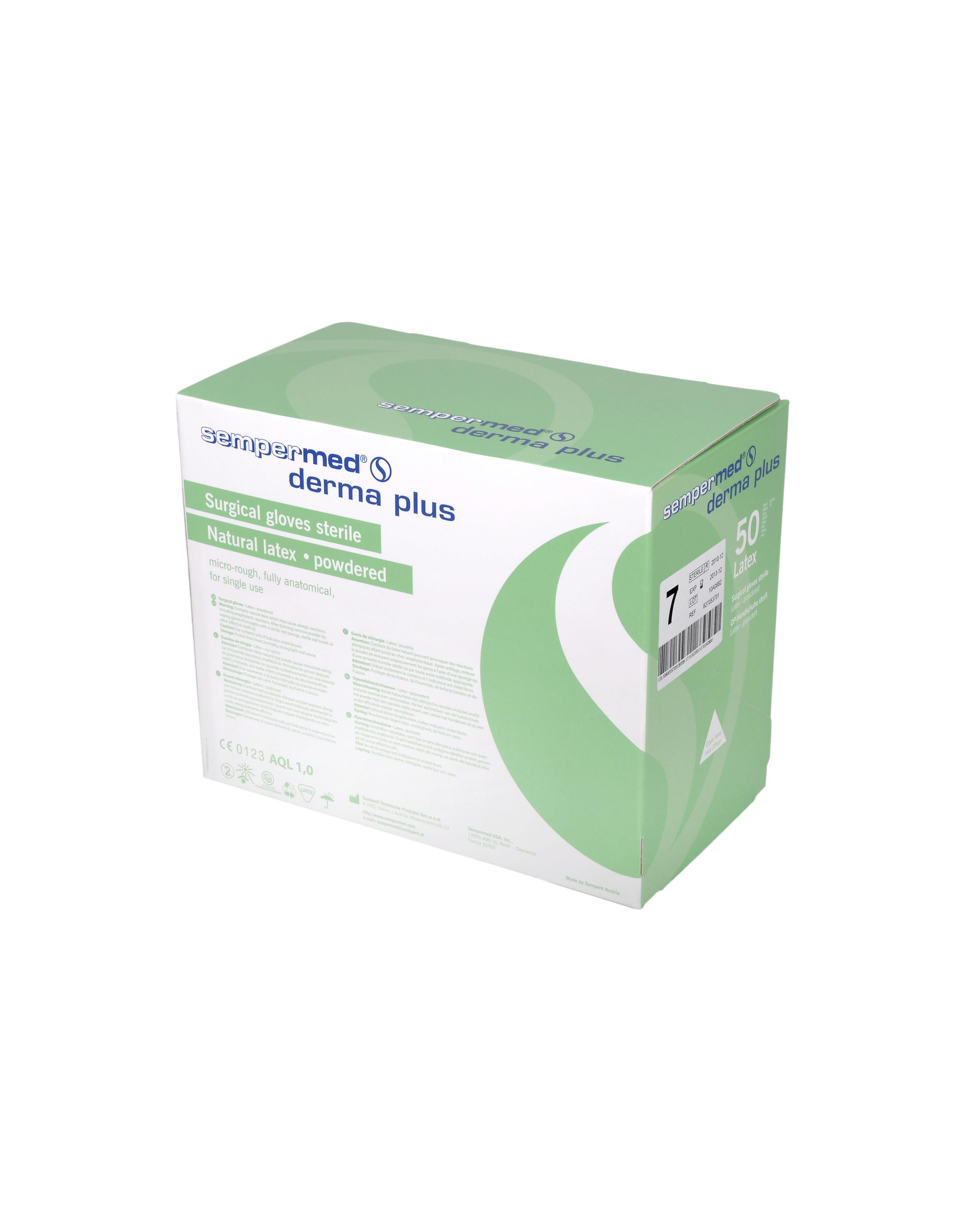 OP-Handschuhe aus dünnem, hellem Latex, vollanatomische Passform, mit Rollrand, resorbierbare Puderung (Maisstärke, weiß), steril, Kartoninhalt: 50 Paar, Positionsnummer im Hilfsmittelverzeichnis: 19.99.01.1008