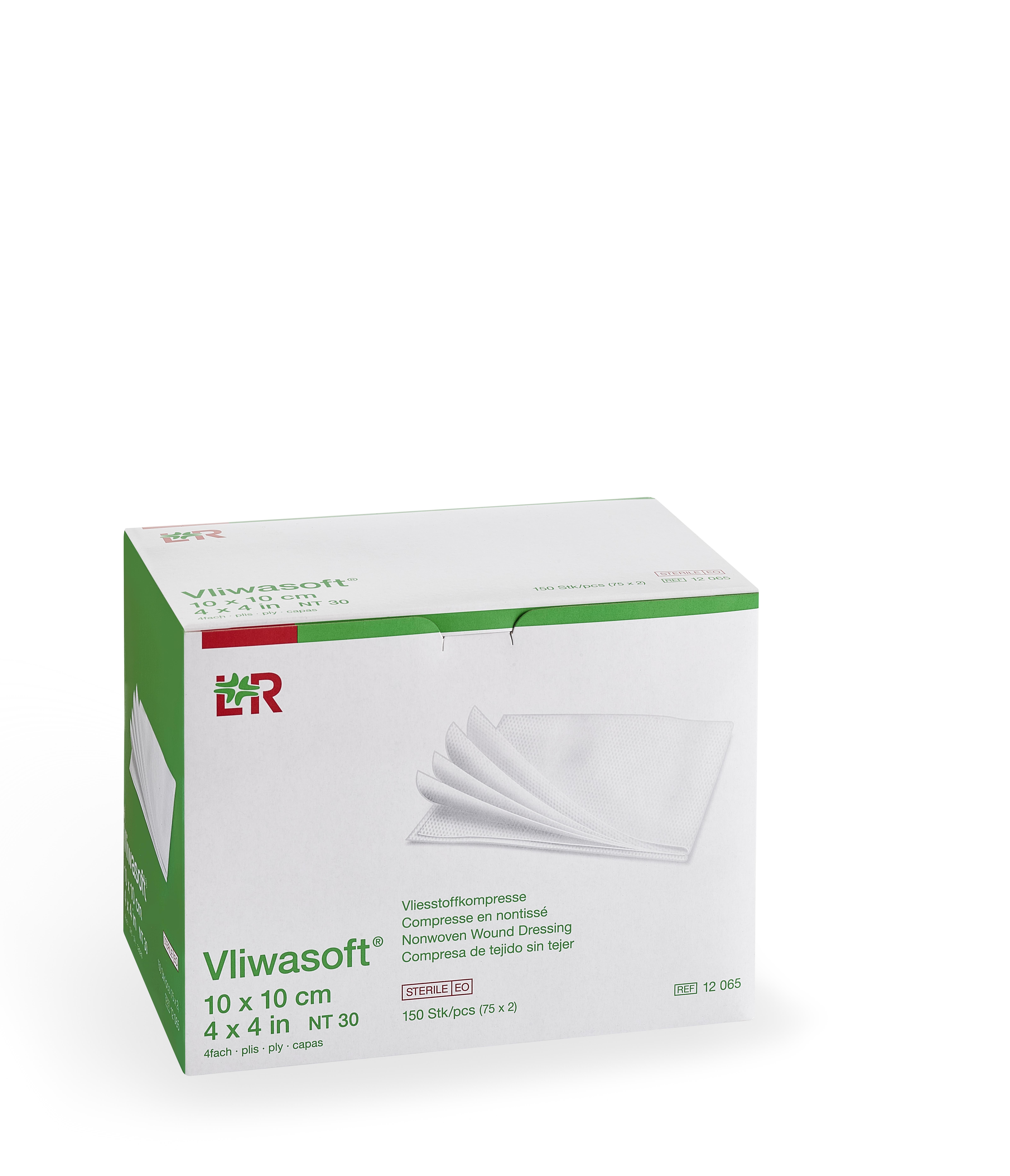 Universell einsetzbare Vliesstoffkompresse, weich und saugfähig, steril, Packungsinhalt: 75 x 2 Kompressen, paarweise eingesiegelt