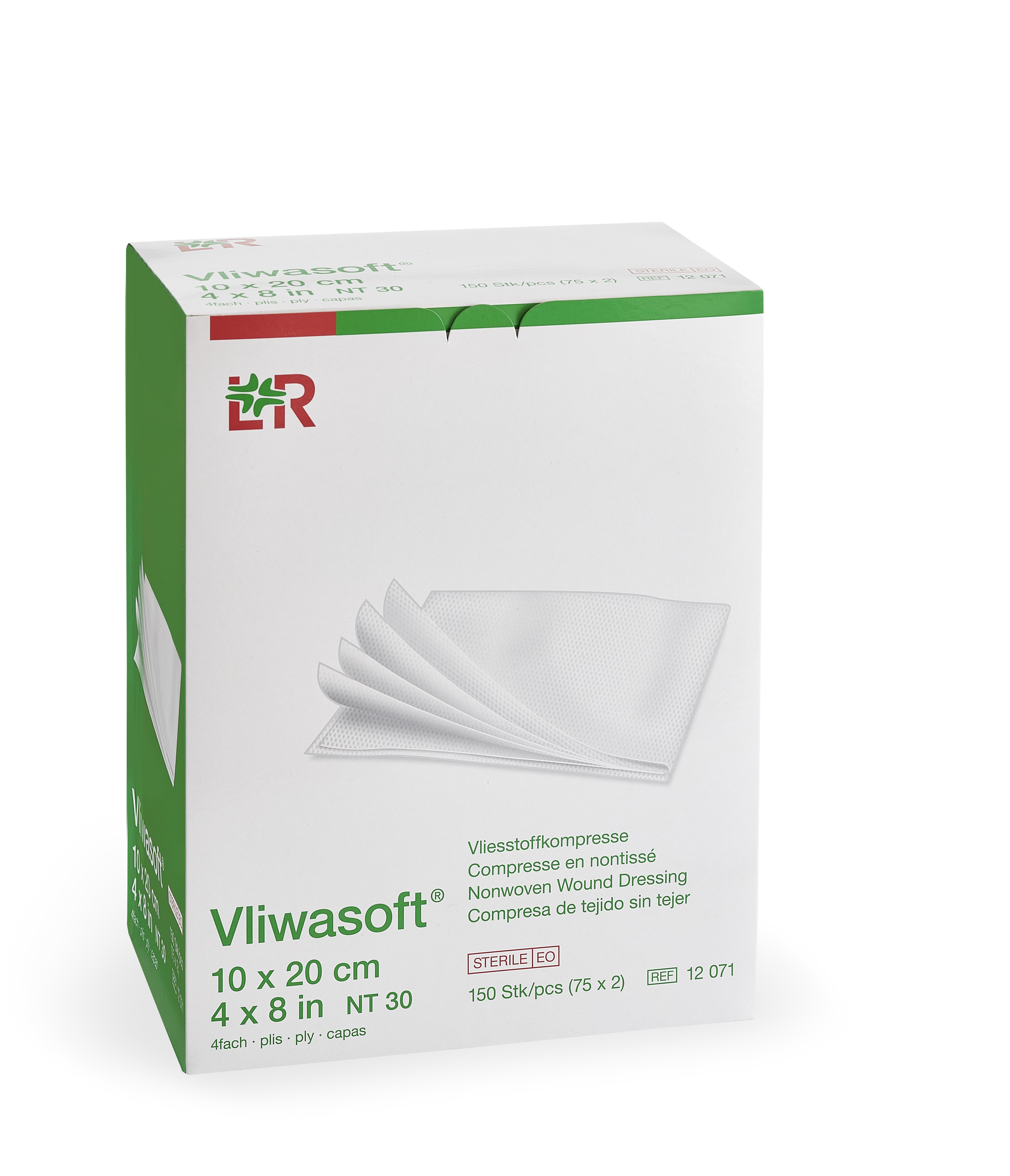 Universell einsetzbare Vliesstoffkompresse, weich und saugfähig, steril, Packungsinhalt: 75 x 2 Kompressen, paarweise eingesiegelt