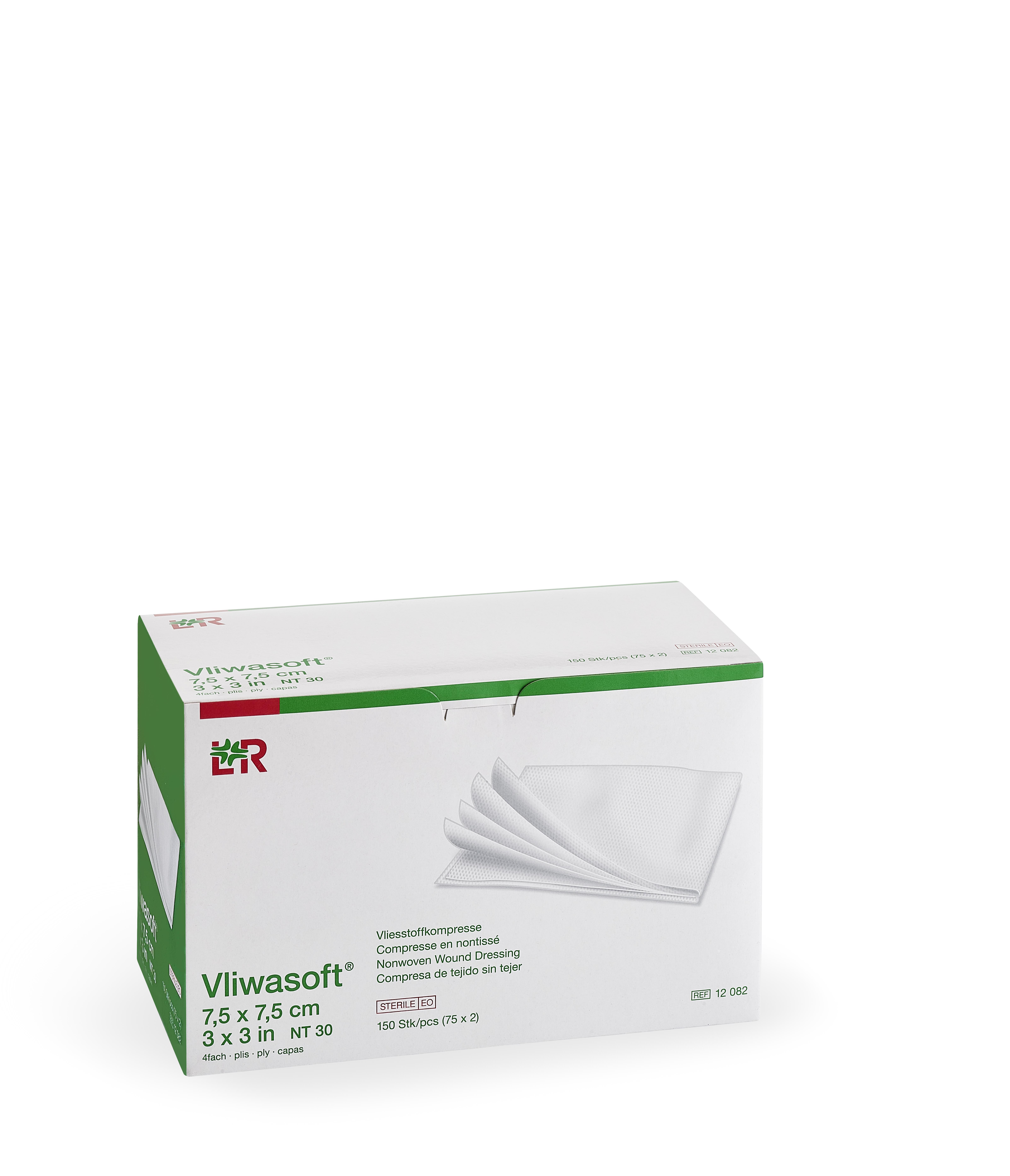 Universell einsetzbare Vliesstoffkompresse, weich und saugfähig, steril